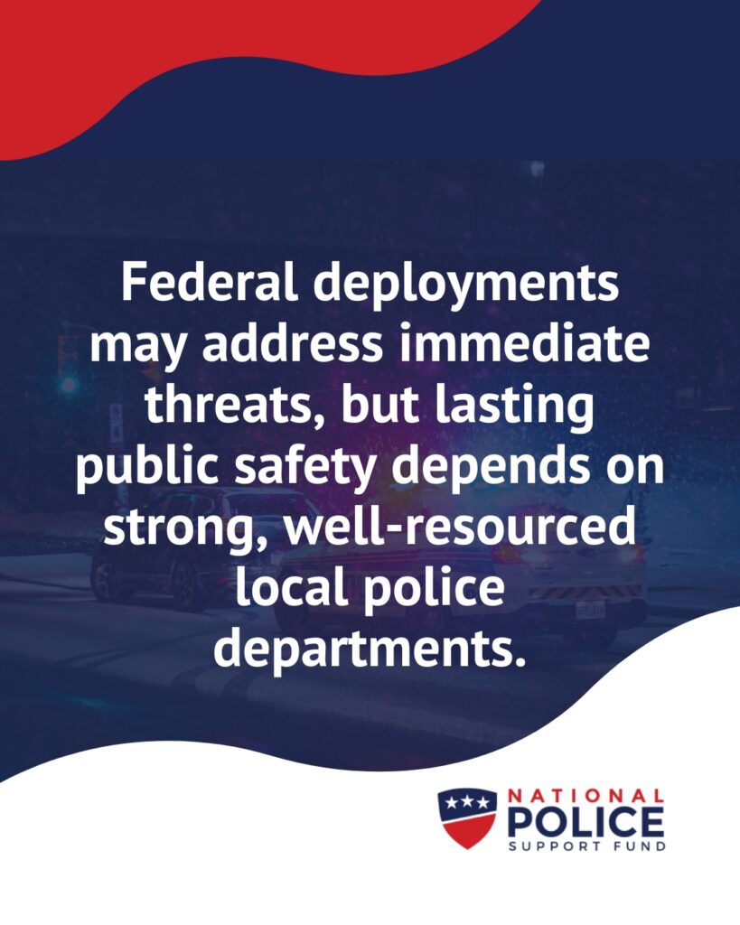The National Police Support Fund recognizes that public safety requires partnerships across federal, state, and local levels. However, sustainable, effective policing begins with strong, well-resourced local departments. Federal deployments can address acute situations, but they are not substitutes for long-term investment in officer training, equipment, and community-oriented policing strategies.